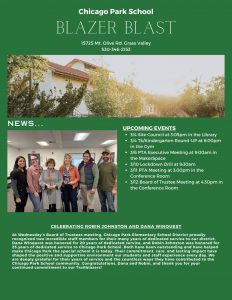 For over 100 years, Chicago Park School has served as a place where kids learn and play. Our once single room schoolhouse has grown into a fourteen room, K-8 campus, with a full-sized gym/multi-purpose room, state of the art Makerspace with 3D printers, music/drama room, and an Academy STEAM lab. In 2011, the District added a second school, the Chicago Park Community Charter School. Our district students, along with our charter school students, benefit from an exceptional on-campus standards-based program that focuses on providing a rigorous 21st Century education with an emphasis in math, science, technology and character development.